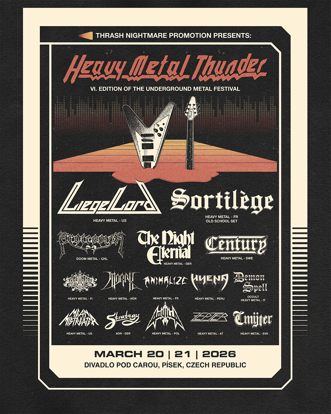 Let´s worship classic heavy metal together! Come to the small Czech city Písek and enjoy club shows of the 15 great bands from 12 countries! Genre legends play here together with amazing young generation and new wave bands play here alongside their heavy metal idols. Without differences. This is the fusion of metal generations! This is totally friendly indoor 2-days festival Heavy Metal Thunder!!! Only one in Czechia! We go together and it shall be forever!